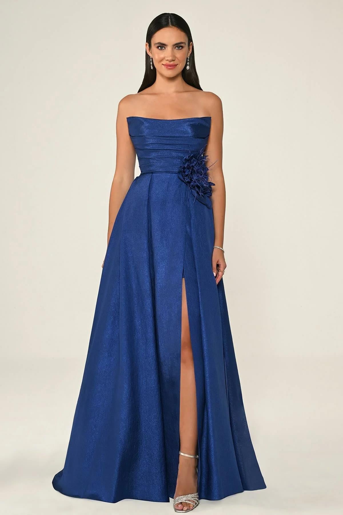 Straplez Düşük Balon Kollu Uzun Abiye Elbise