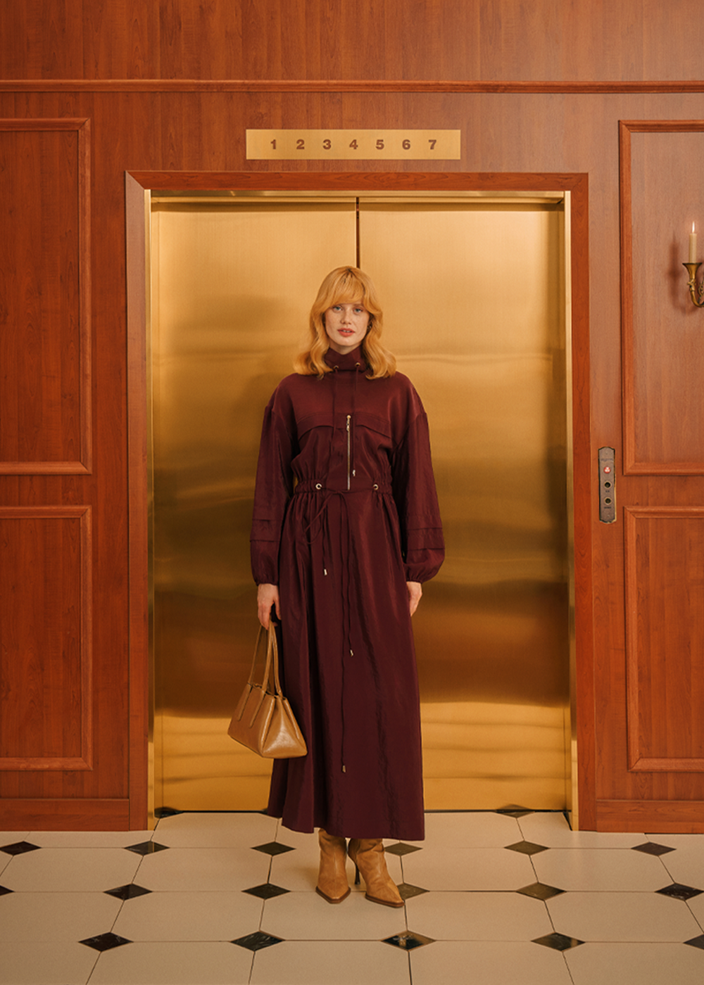 Fermuar Detaylı Bel Büzgülü Paraşüt Elbise