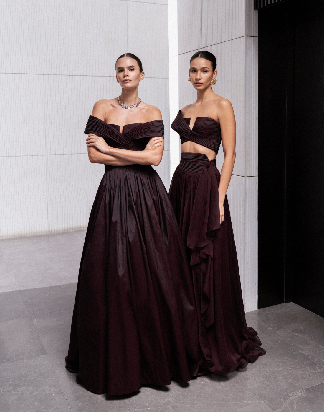 Off-the-shoulder Long Evening Dress with Waist Gathering Detail